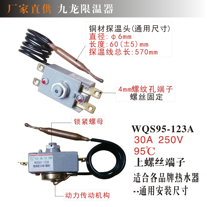 Water storage electric water heater limited temperature ware Kowloon overwarm protection switch WQS95-12 123A Temperature controller 30A