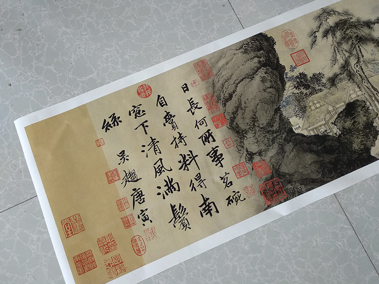 Ming and Tang Dynasties Ming Tu Chinese Painting Banner Landscape Xuan Paper Ink Copy Painting Antique Prints Living Room Study Decoration Painting