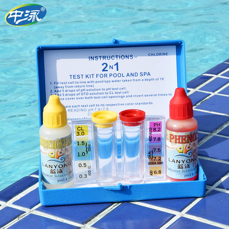 Blue swim brand 2-in-1 water quality test box practical 2-in-1 water quality test box small bottle 22ML residual chlorine reagent supplementary small bottle 22MLPH reagent supplementary large bottle 250ML residual chlorine reagent supplement