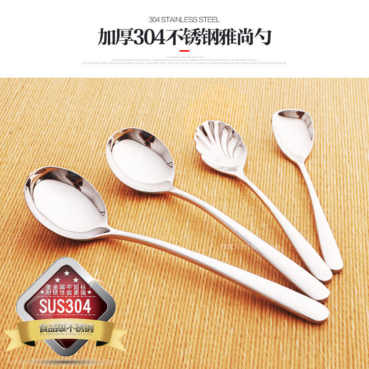 304 stainless steel spoon table spoon long handle spoon thickened spoon small round spoon to eat children's baby home spoon