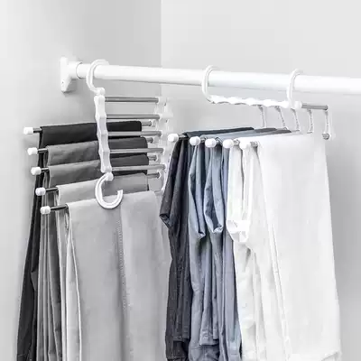 Multifunctional trouser rack folding magic trouser clip household wardrobe telescopic multi-layer hanger hanging pants storage hanger artifact
