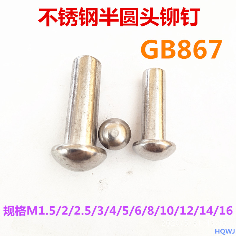 304 stainless steel solid half round head rivet GB867 mushroom head solid rivet M10* 20 30 50-120