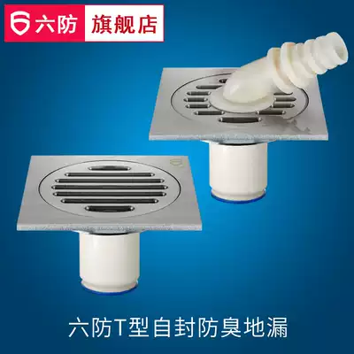 Six-proof floor drain dressing room dry area anti-return water self-sealing T-type all copper kitchen balcony washing machine deodorant floor drain