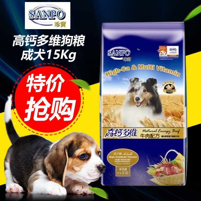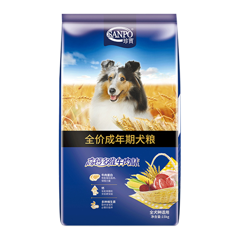 Jumbo high-calcium multi-dimensional beef adult dog food 1 5kg*10 bags medium and large dog staple food golden retriever 15KG