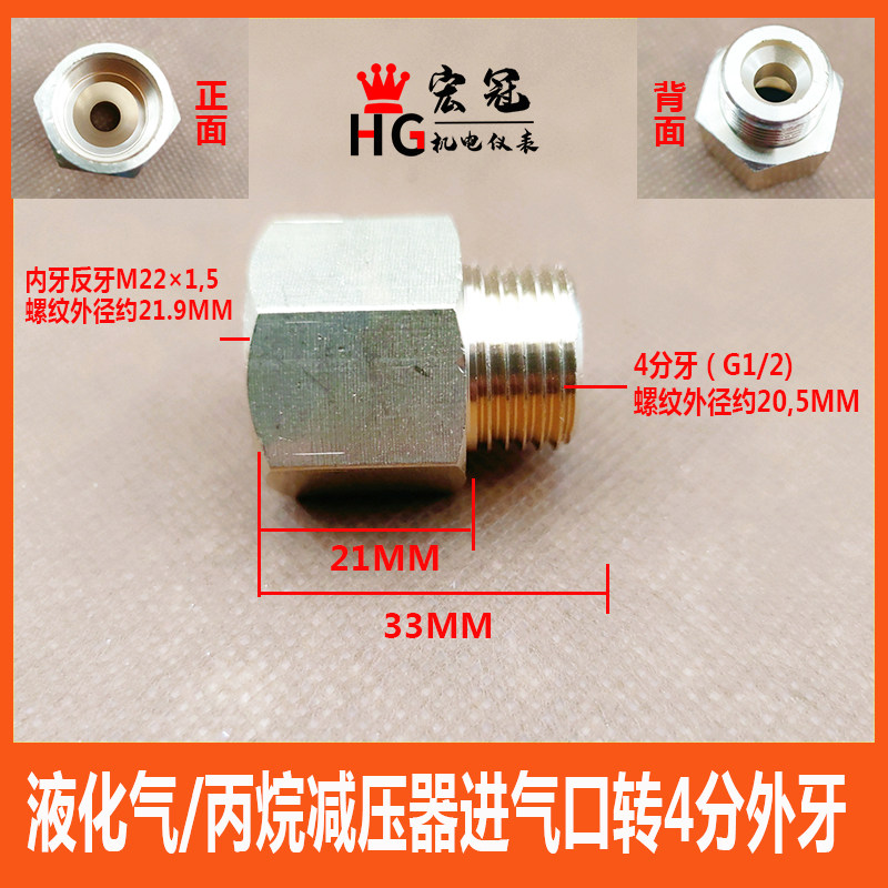Propane pressure reducer intake copper connector Anti-tooth nut M22 × 1 5 gas pressure reducing valve connector turn 4 points G1 2
