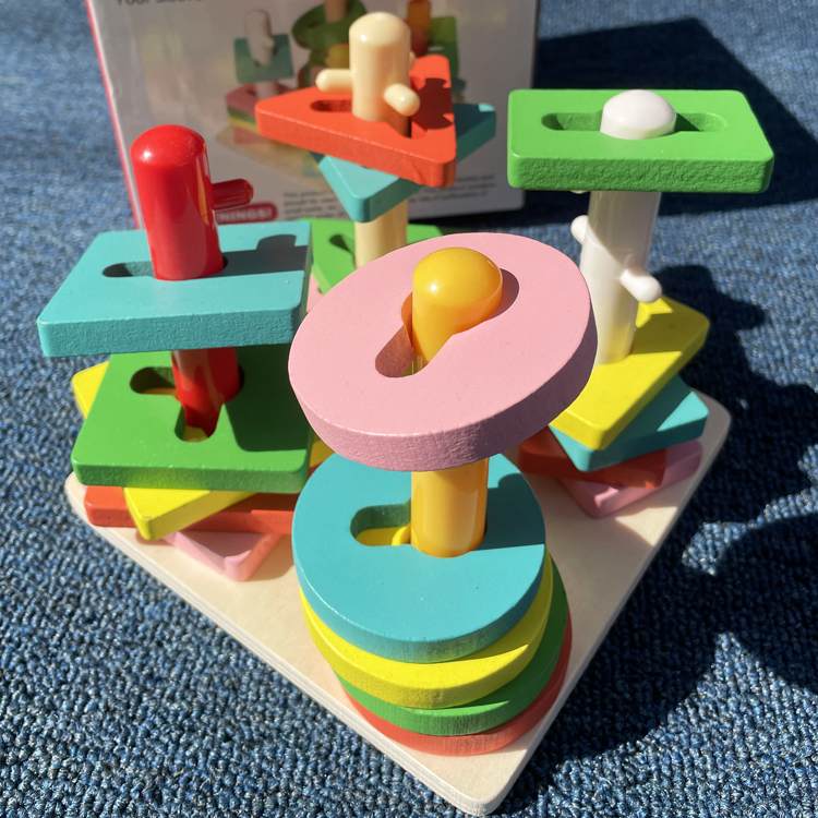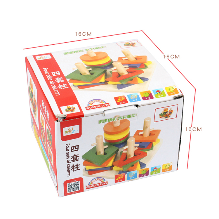 1-3-4-5 years old teaching aids wooden children's educational toys color shape sets of columns four-column set building blocks