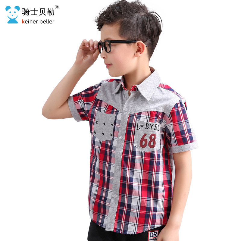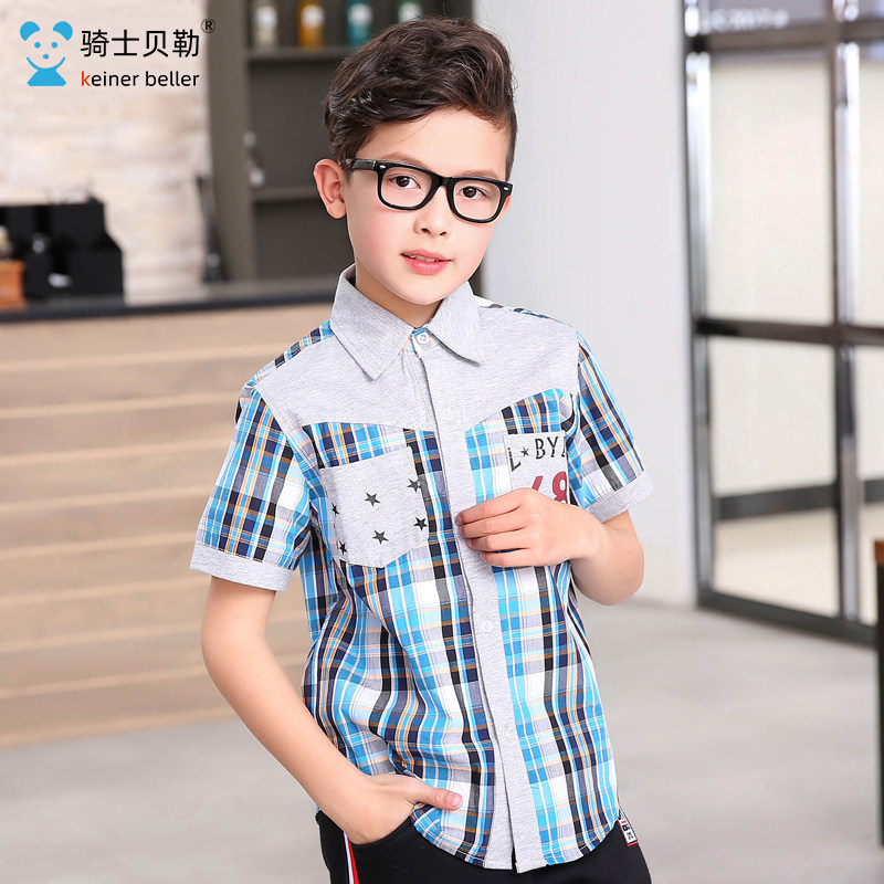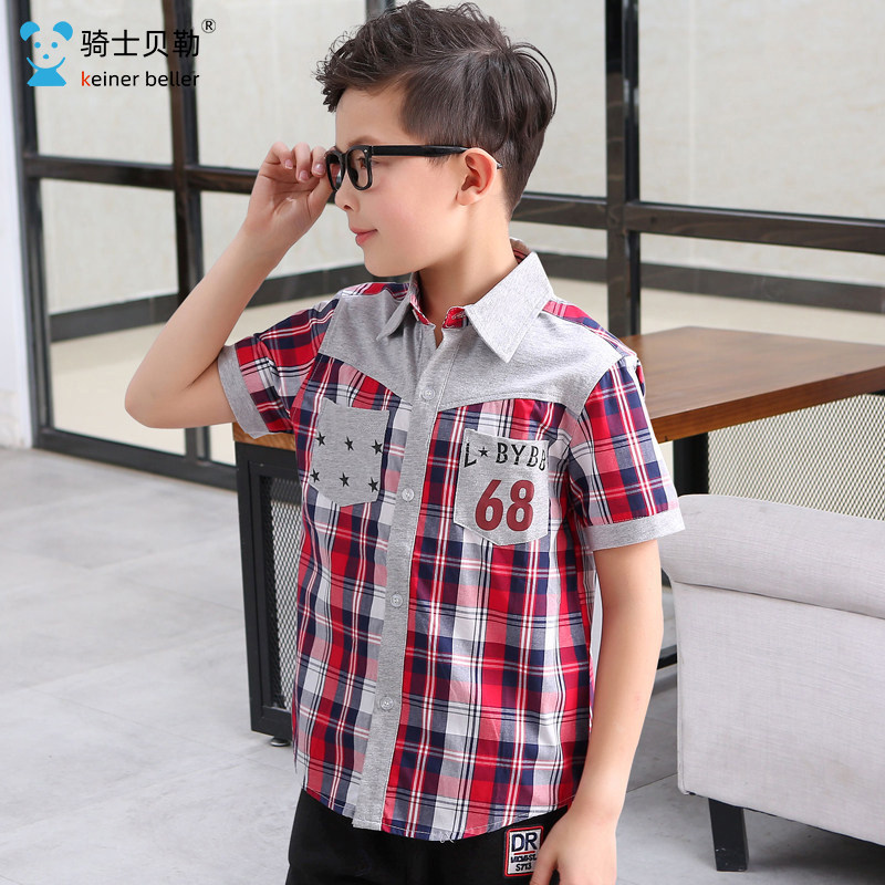 Cavalier Belle Summer Boys Short-sleeved Shirt Korean Style Trendy Children's Cotton Plaid Shirt Big Boy Plaid Shirt - Taobao