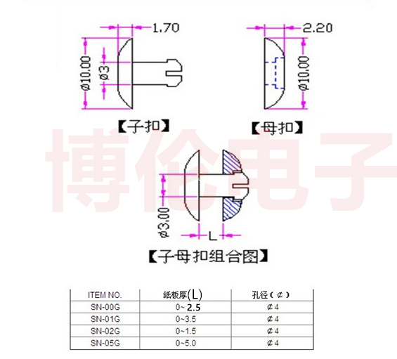 Plastic stationery sub-mother buckle Nylon plastic printing binding buckle RIVET buckle Tent buckle 0~5MM thick fixed