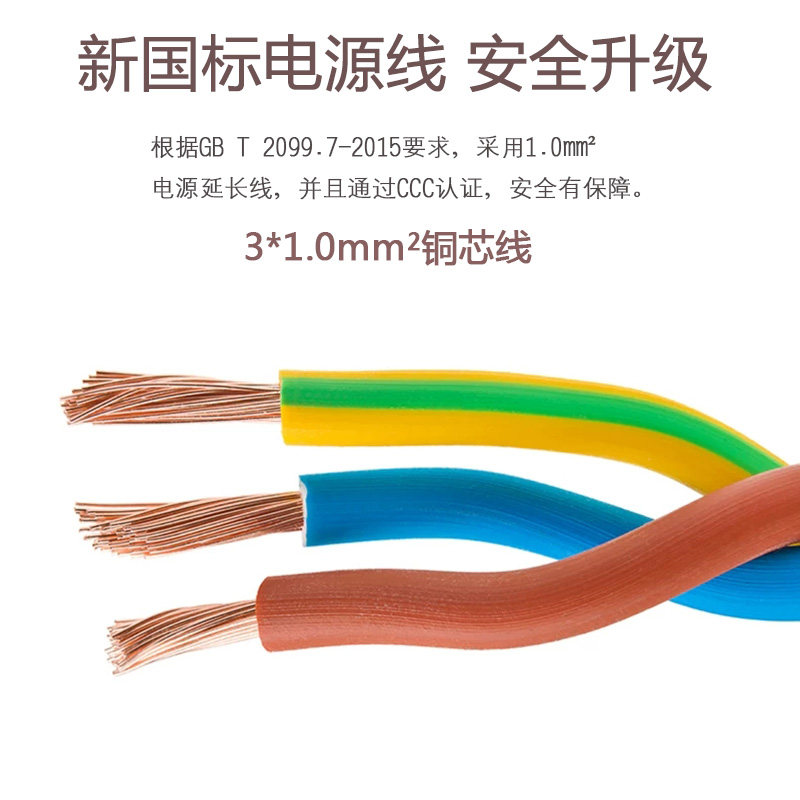 Three-hole power extension line Three-plug waterproof socket row plug extension line Three-core plug socket washing machine extension line