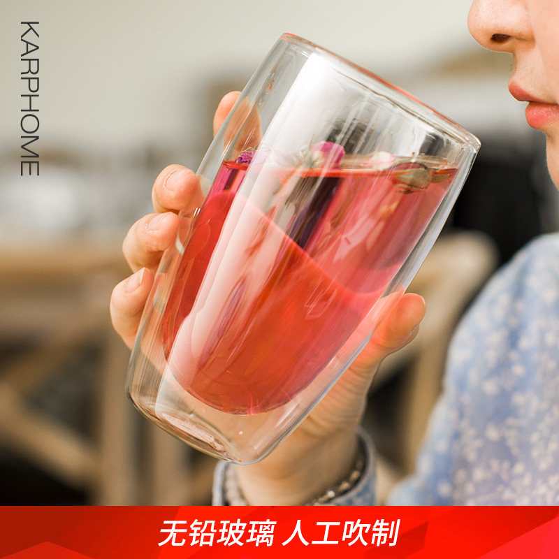 Kapp double layer heat-resistant non-hot hand glass Milk cup Home office water cup Juice cup Large capacity drinking cup