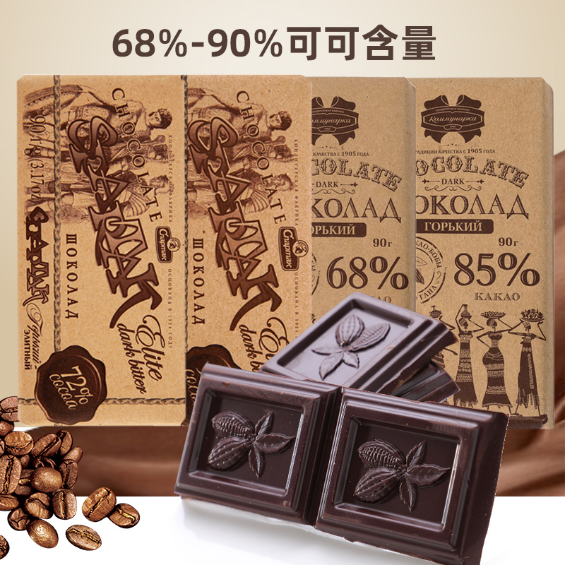 Russia imported pure dark chocolate 56-90% pure cocoa butter Spartak classic dark chocolate super bitter 90g