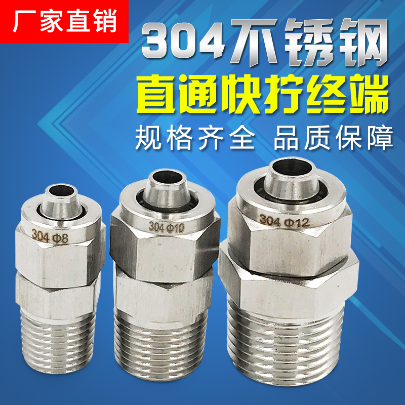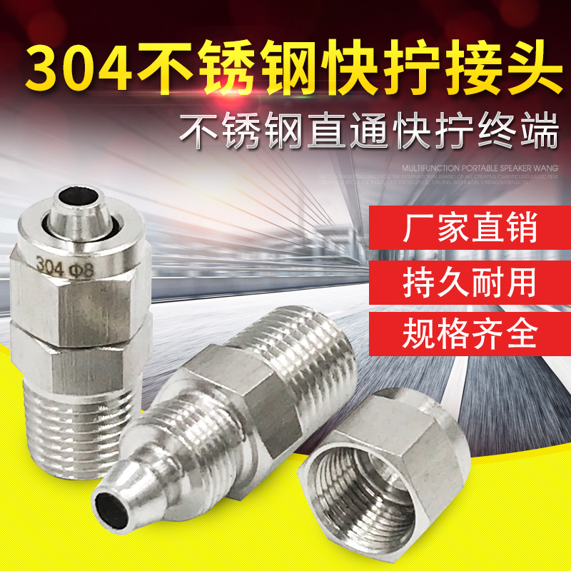 304 stainless steel quick screw straight through lock mother type joint Teflon pipe PU pipe straight through joint nylon tube connector