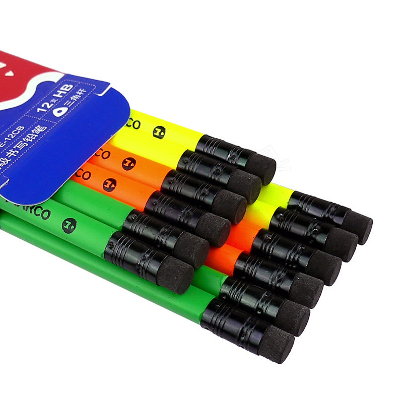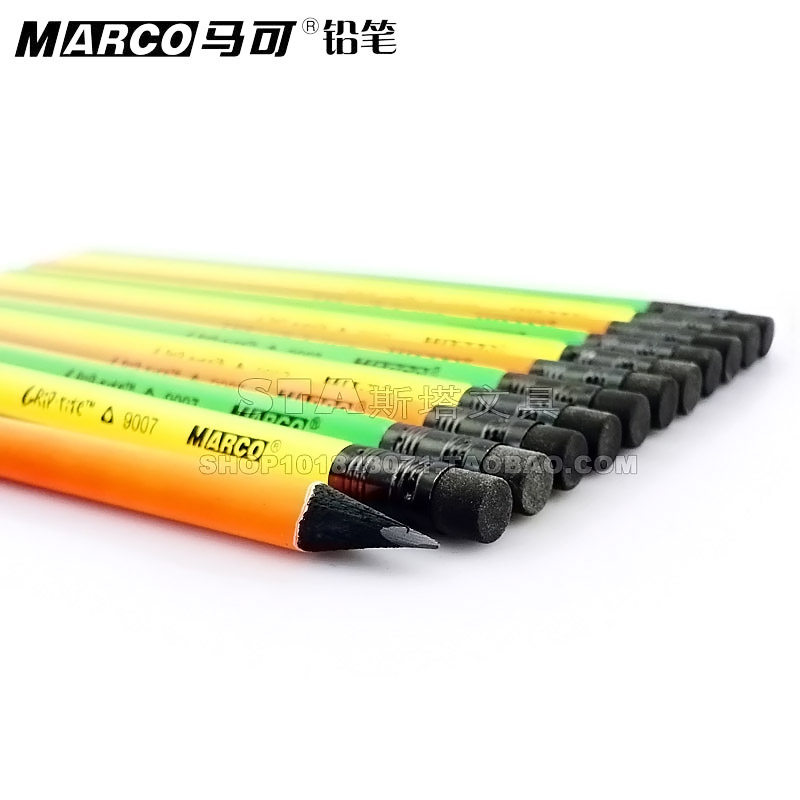 Marco Marco pencil 9007 black wood triangular pole HB rubber head student writing with constant children pencil-Taobao