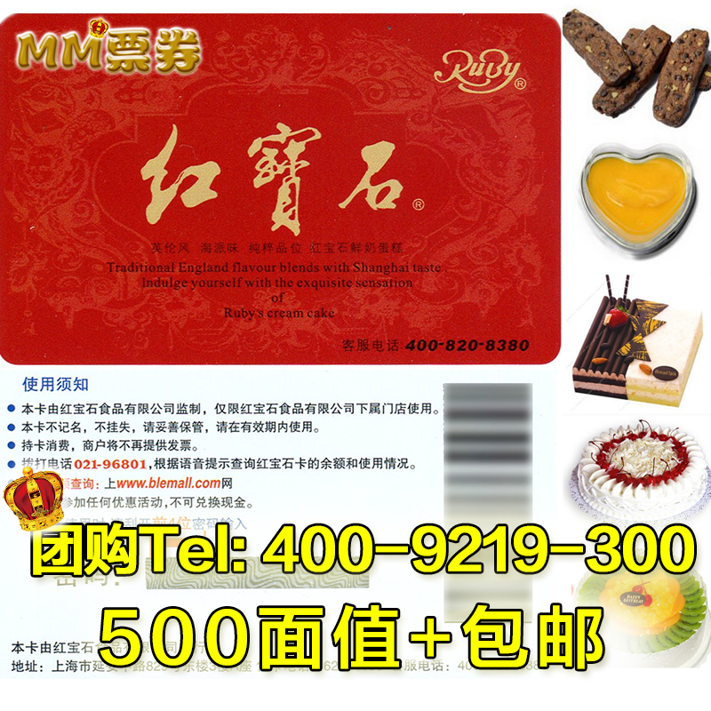 Ruby Card Bread coupon Pastry Cake coupon Cash coupon Pick-up card 500 face value Shanghai use