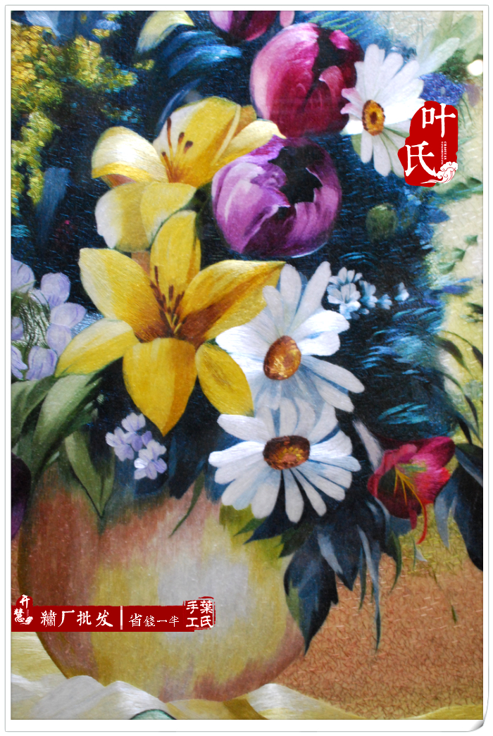 Hunan Xiangembroidery Living Room Decoration Painting High-end Boutique Flower Basket Tuxiang Embroidered Boutique Mall Special Cabinet Synchronized