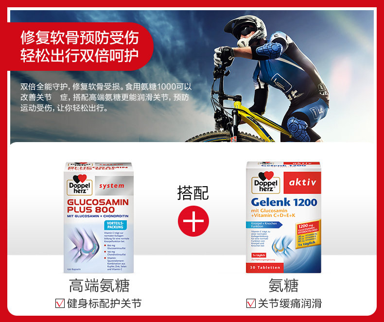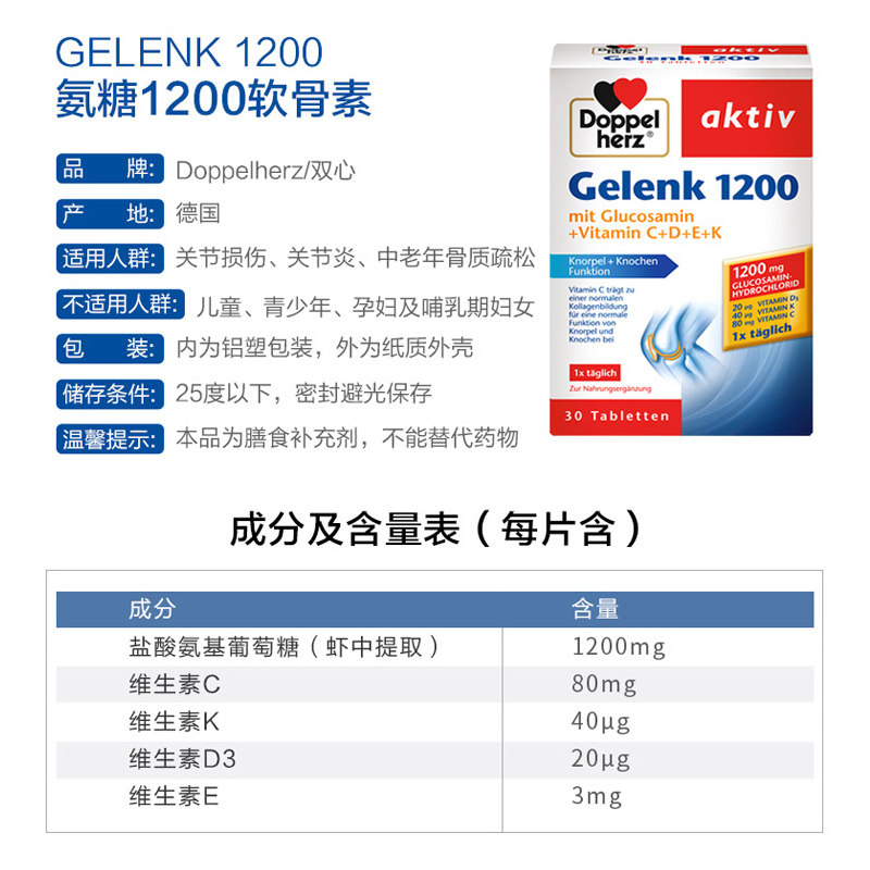 Germany Duobao Double Heart Original Imported Chondroitin Glucosamine 1200amine Osteoarticular Osteoporosis 30 Capsules