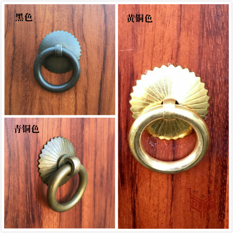 Copper pull ring Chinese style antique pure copper furniture cabinet door ring simple copper ring drawer Chinese medicine cabinet cabinet handle handle