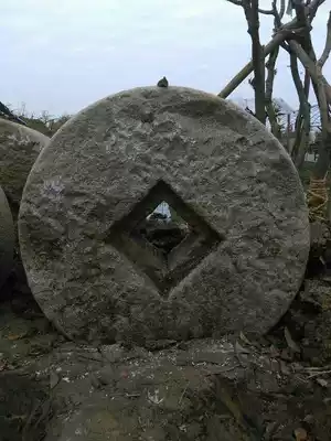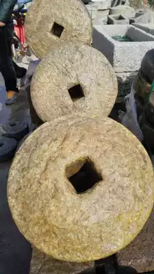 Old stone money paving stone flower pot base tea tray accessories Folk old objects boutique ornaments Old stone trough grinding plate