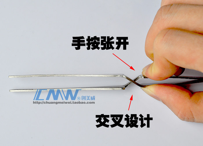 Stainless steel tweezers cross - reverse tweezers round head reflex tweezers save force tweezers fixed clamping