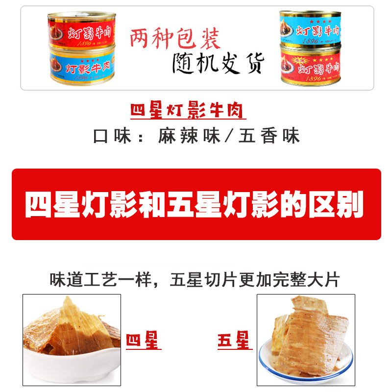 Sichuan Dazhou specialty Laodazhou four-star light shadow beef jerky slices 80g canned spiced spicy snacks