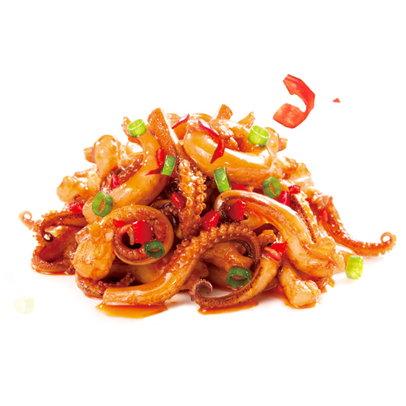 Squid almond mushrooms chilli yellow wine edible salt white sugar, etc.
