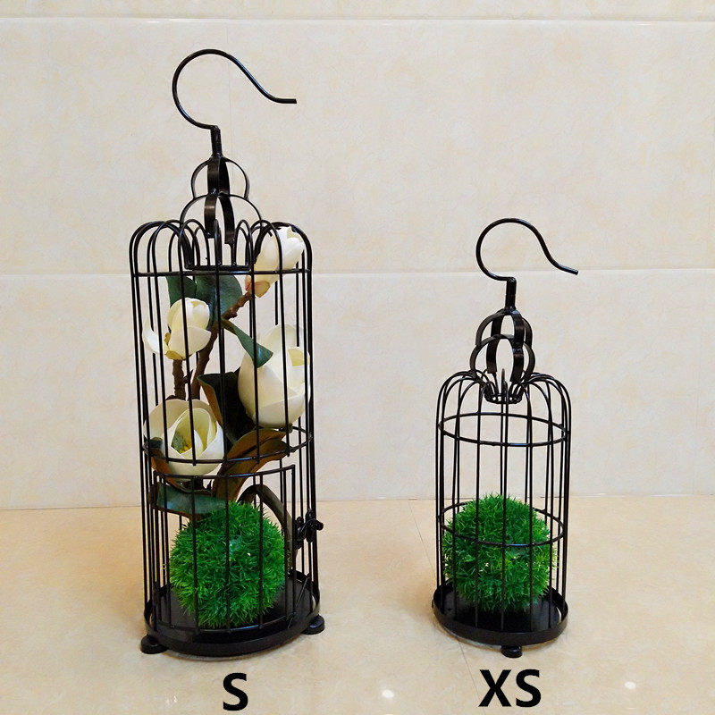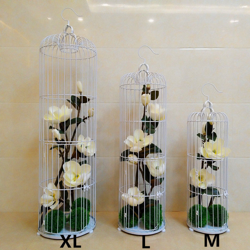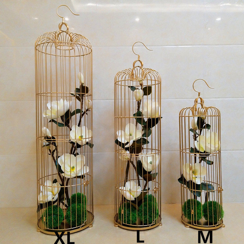 Decorated iron cage black and white gold landing bird cage floral floral wedding props large wedding window