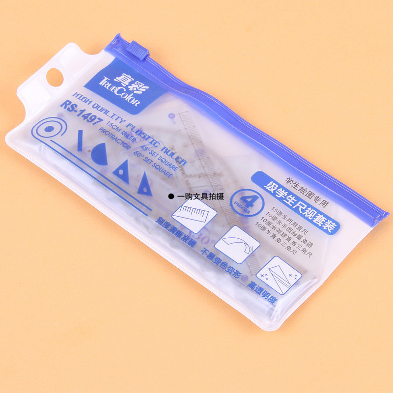 True color student Drawing sleeve ruler Angle Gauge Protractor Four Pieces Sleeves RS-1497 tip: Protractor no small hole