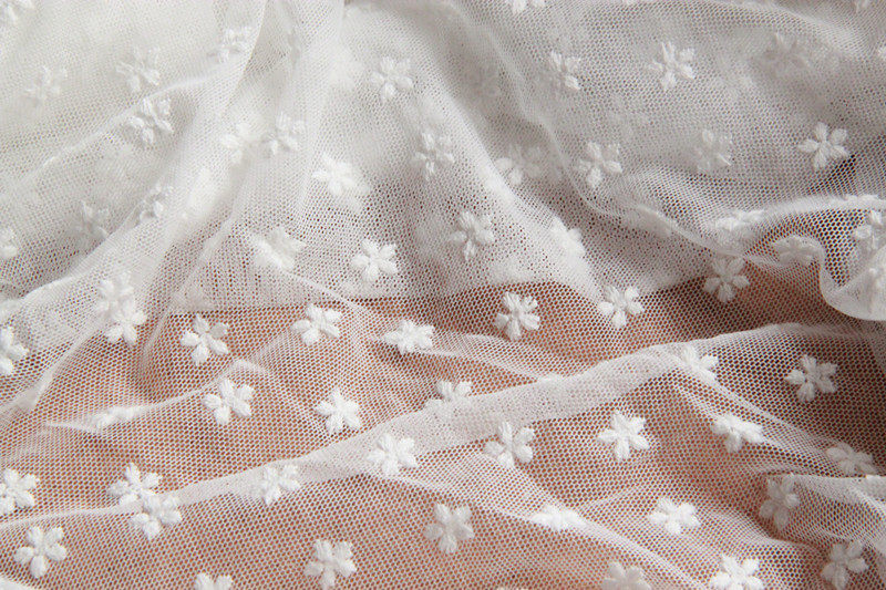 Day single clothing embroidery flower mesh fabric fabric plum blossom gauze curtain lace handmade scarf fabric diy fabric