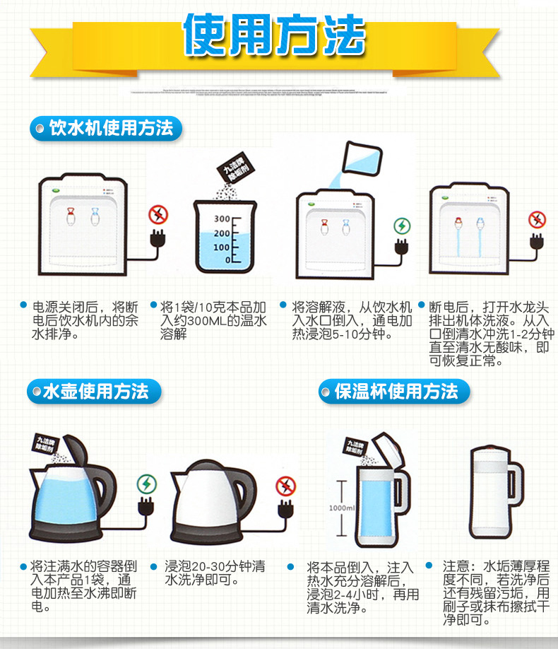 jogel Jiujie brand multi-effect cleaner electric kettle humidifier water dispenser descaling agent 10g 100 bags