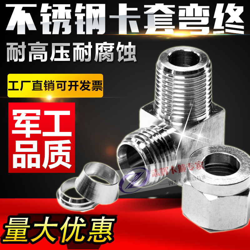 304 stainless steel sleeve terminal bending 90 degree hydraulic right angle joint ZG thread bending instrument gas source copper