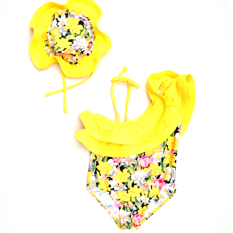 ins wind child girl Lieven body baby toddler cute little princess swimsuit holiday girl swimsuit baby delivery cap