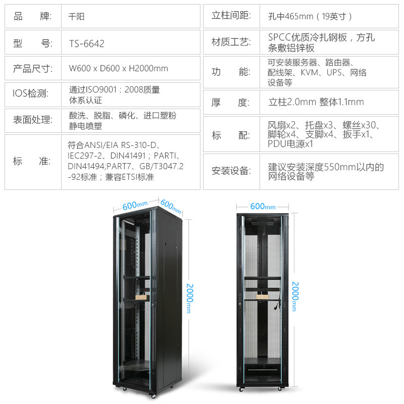 Network Cabinet 2m42U Switch Cabinet Server Monitoring Amplifier Computer Cabinet Luxury TS6642