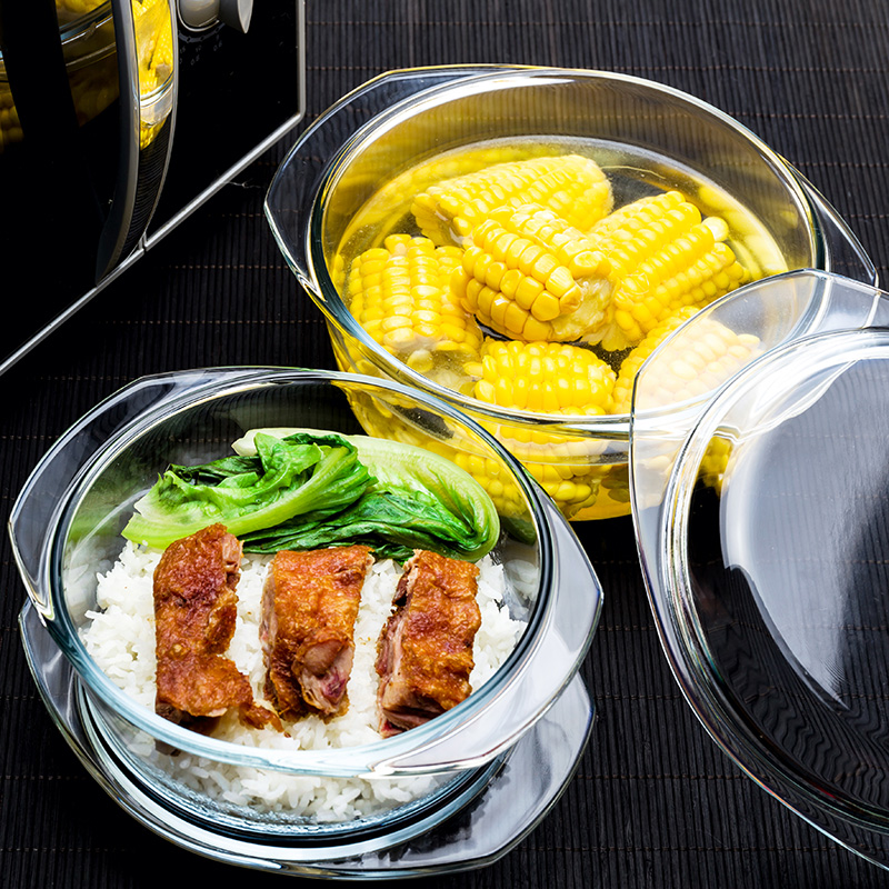 Microwave oven special glass bowl with lid Household transparent heat-resistant steamed custard bowl binaural baking bowl Oven heating utensils