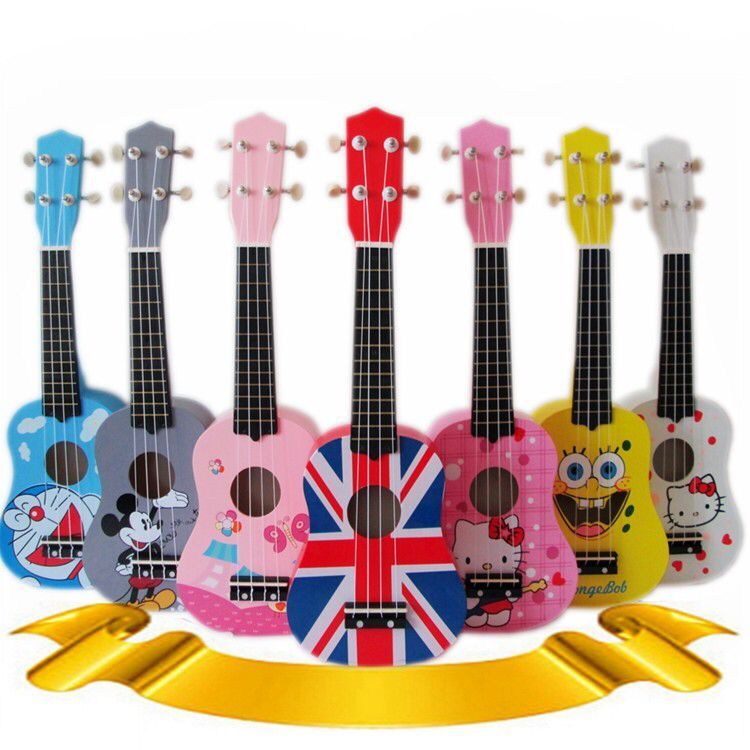 Wooden 21-inch four-string ukulele simulation children's toy small guitar beginner can play music instrument piano solid wood