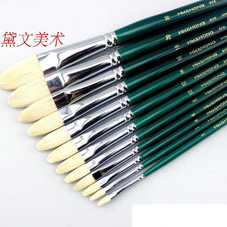 South Korea HWAONG Huahong 808 pig mane oil paintbrush flat round head tongue shaped oil painting pen propylene pen watercolor pen