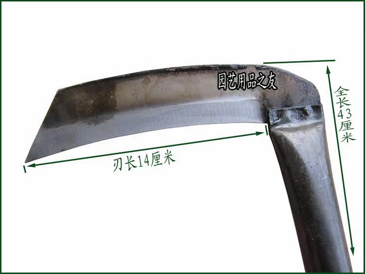 Full steel hoe grass long sickle cutting grass knife garden pick straw knife rubber sleeve handle edge length 14CM gardening farm tool