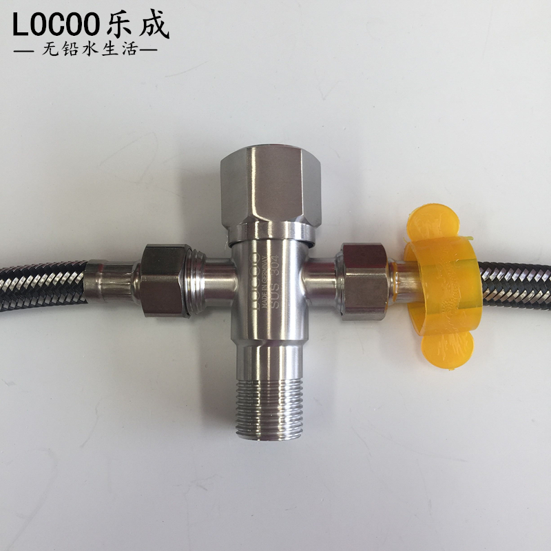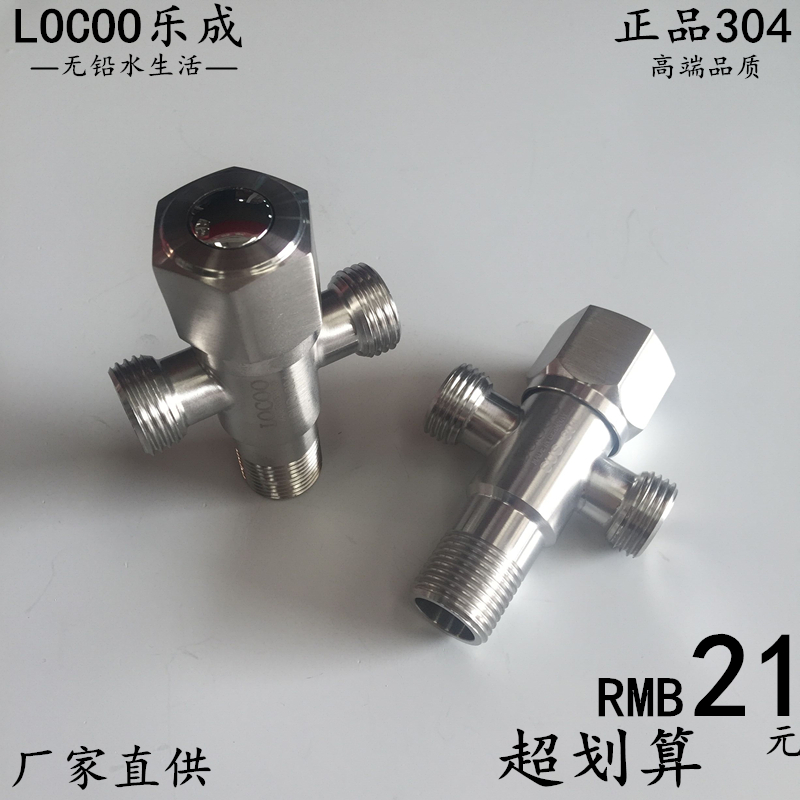 Le Chin genuine 304 stainless steel one in two out three-way angle valve thickened hot and cold universal water stop valve multi-function