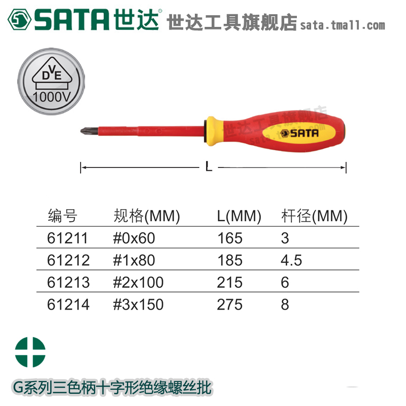 Shida German tools insulated screwdriver screwdriver G series electrician long phillips screwdriver screwdriver 61211