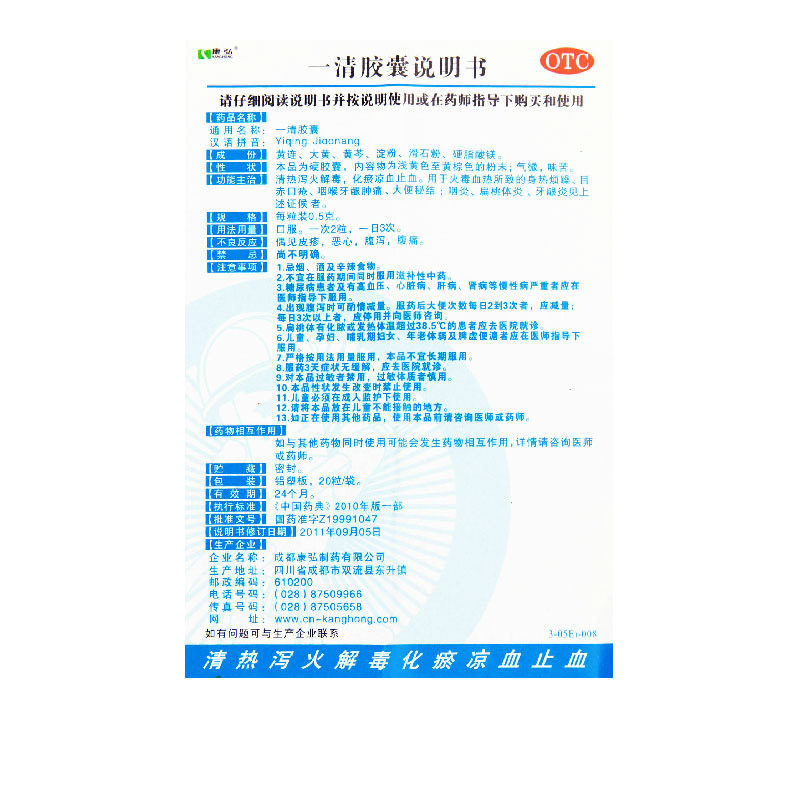 Kanghong Yiqing capsule 20 capsule infection pharyngal pain constipation gum pain laxation