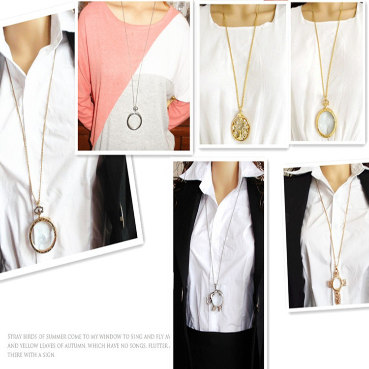 Magnifying glass Korean version long version sweater chain Wild exquisite carved necklace accessories Long summer women's jewelry