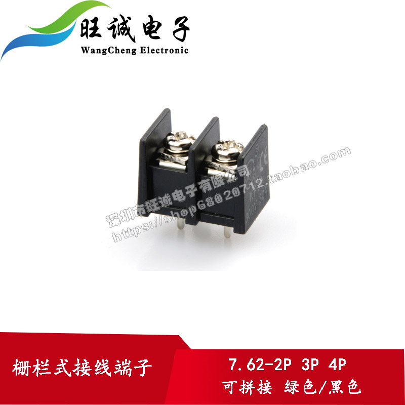 Screw type wiring terminal 7 62mm pitch fence type wiring terminal 2P wring cross screw black side foot type