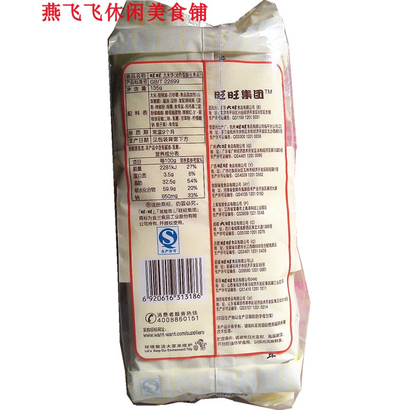 135g Wanwang Rice Cake Casual Snack 5 bags above the bag
