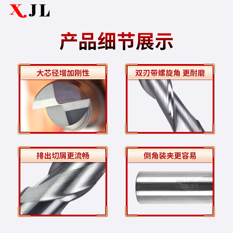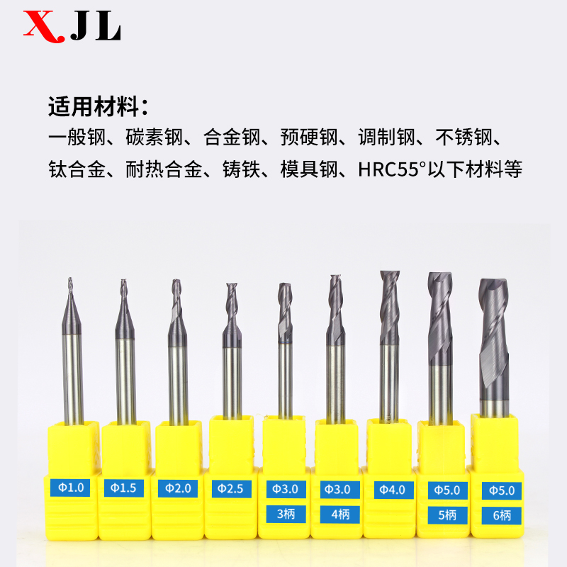 XJL high hardness 2-edge keyway milling cutter 55 degree coated tungsten steel alloy end mill machining center coated double-edged milling cutter