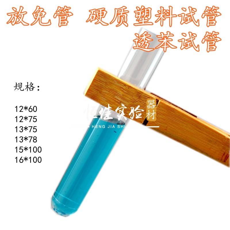 High quality release tube-free hard plastic test tube 12mm 13mm 15mm 16mm benzene permeable test tube