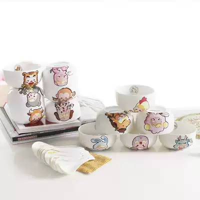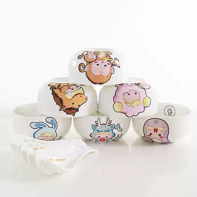Ceramic Bowl set cute cartoon Korean bowl 4 Bowl 4 Bowl 4 spoons 6 Bowl 6 spoons children creative tableware Rice Bowl Spoon