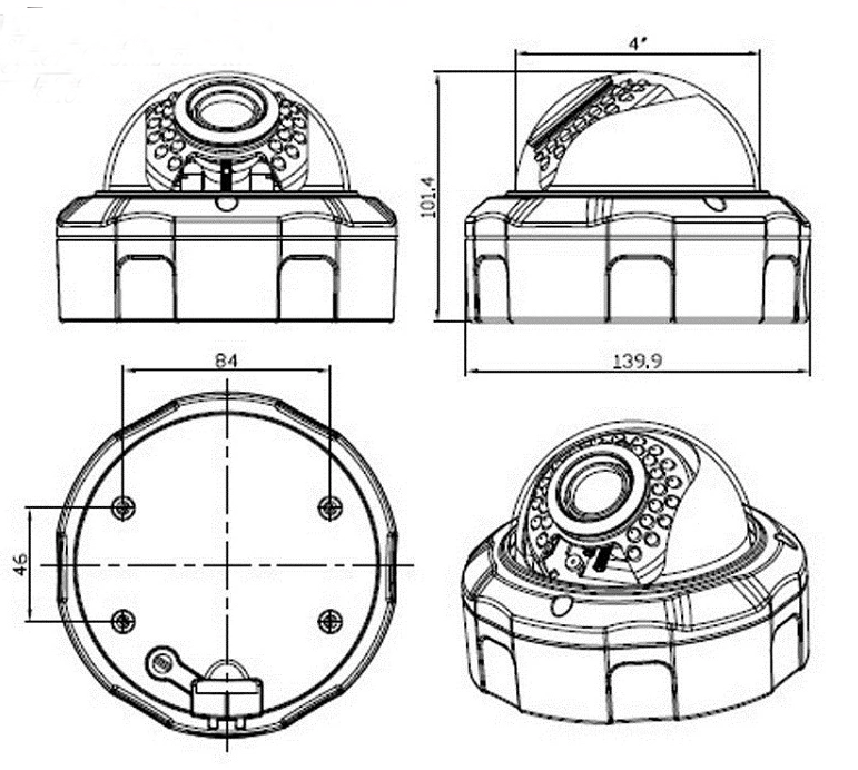1080P Metal Dome SDI HD Digital Camera 2.8-12mm 4x Optical Zoom Industrial Camera