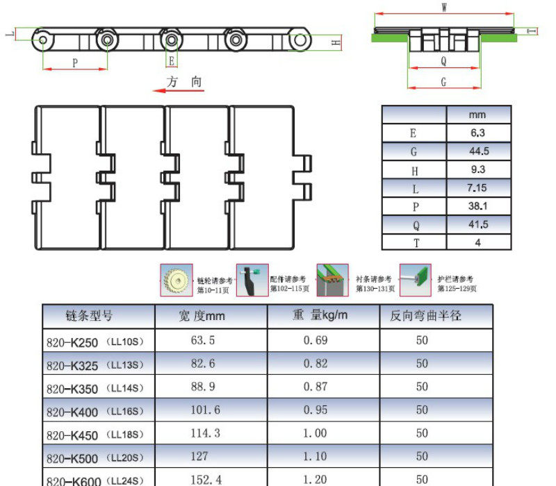Plastic chain plate 820K750 linear conveyor chain plate width 190 5MM flat top straight chain single hinge plate