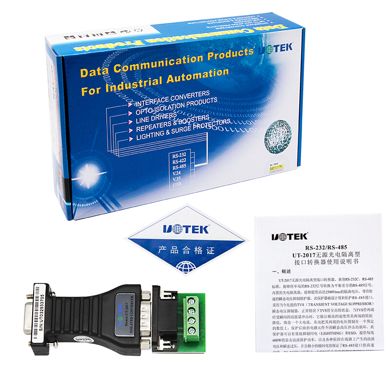 Utai UT-2017 RS232 RS232 RS485 passive bidirectional converter with photoelectric isolation DB9 serial port conversion 232 turn 485 converter communication module Optoelectronic Isolator