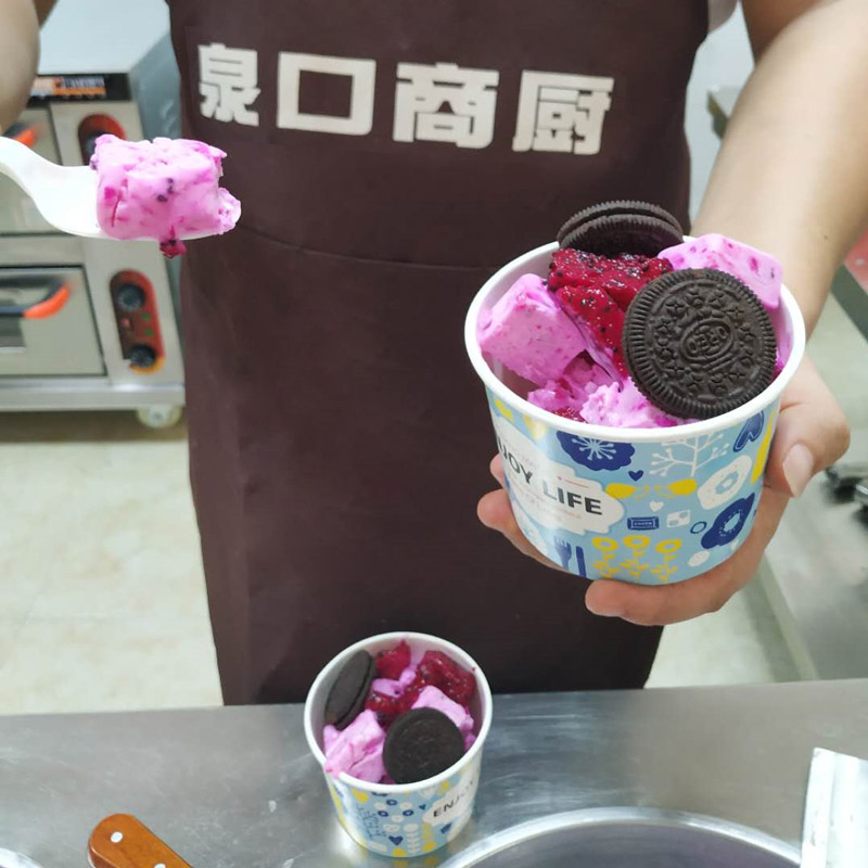 Double pressure double control fry ice machine commercial double pot Xu Hou cut fried yogurt machine fried milk fruit ice cream fruit Mr. Ling Rui