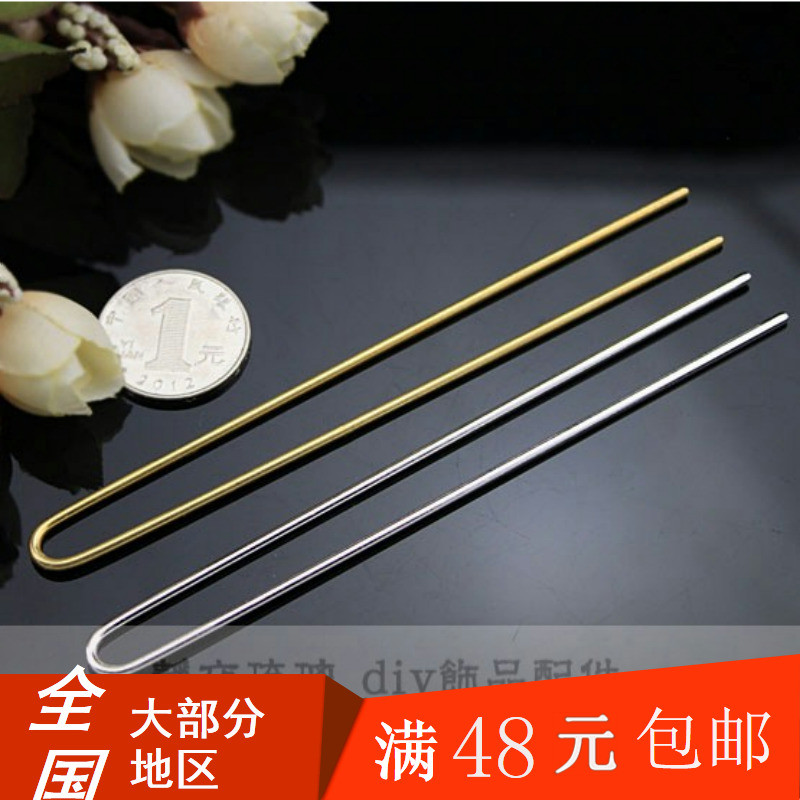 DIY Ornament Accessories Headwear Material Hair Accessories Hanfu Hairpins Pure Copper Hairpin Stick Brass U Type Double Straight Hairpin F14